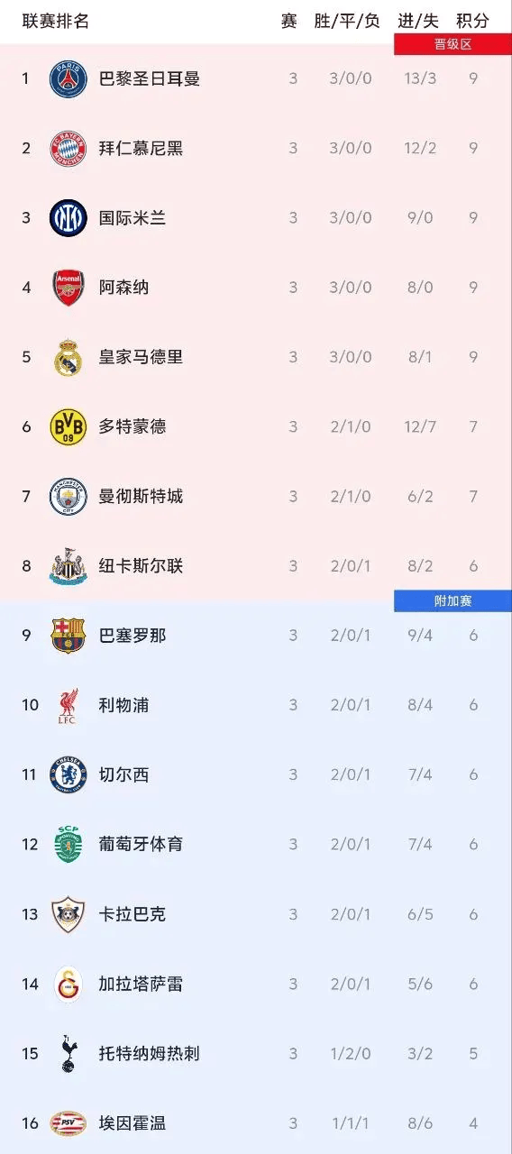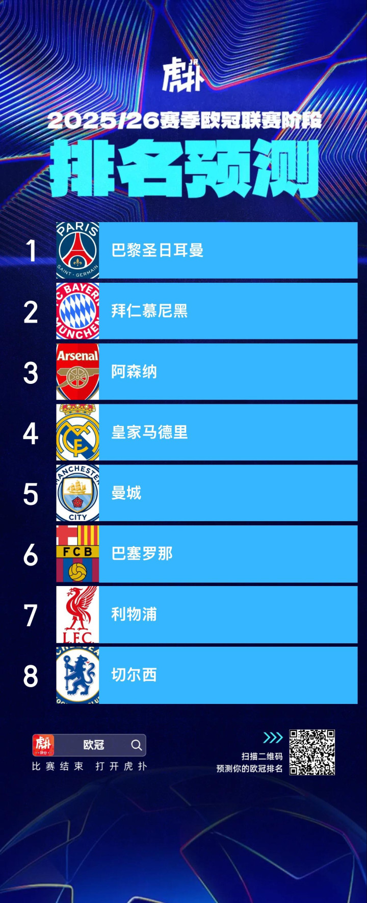 明天凌晨,欧冠将展开联赛阶段第四轮的角逐,我们统计了欧冠第三轮结束后JRs对欧冠联赛阶段前八名的预测结果: